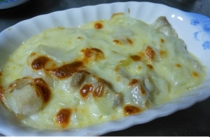 もちグラタンに挑戦しました!! グラタンの素は使わず、牛乳と生クリームでホワイトソースを作ってお餅も焼いて さあ完成が楽しみとふたを開けると……あれ?? シチューだ。 シチューになってしまった。