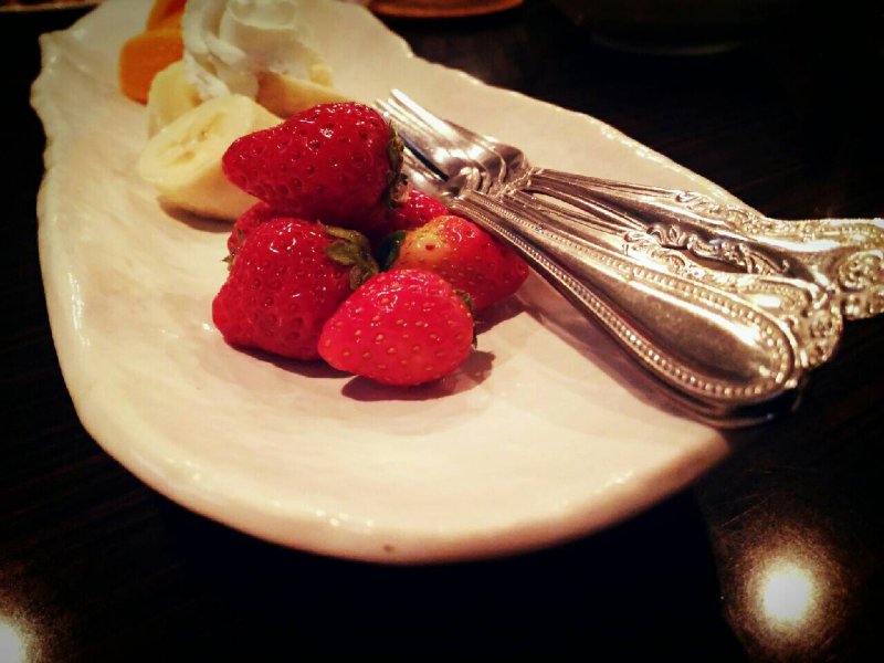 写真は、かっこ良く撮れたイチゴです。 オシャレなお店で、料理がスムーズでした!!!