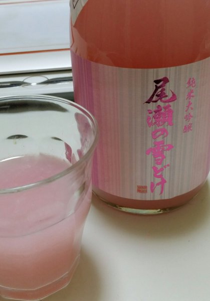 春限定の日本酒、尾瀬の雪どけの桃色にごりです。