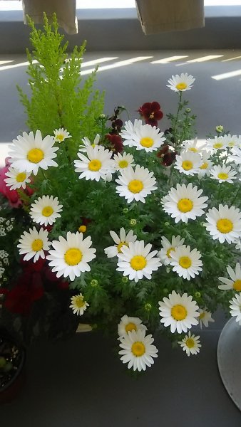 2枚目の白いキク科?のお花が一番元気が良いようで…鉢から飛び出して天高く育っています(*´∀`)