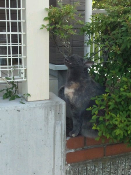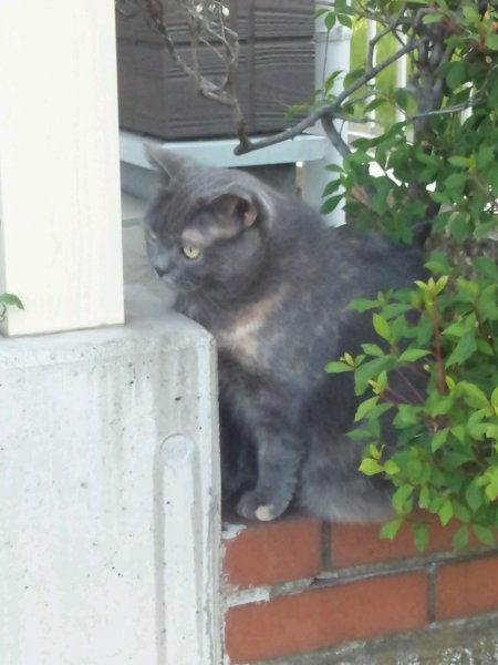 家の前を通ると、何故か、向こうから寄ってきて、 しっぽをたてて、私の足にすりよって来ます(^-^)