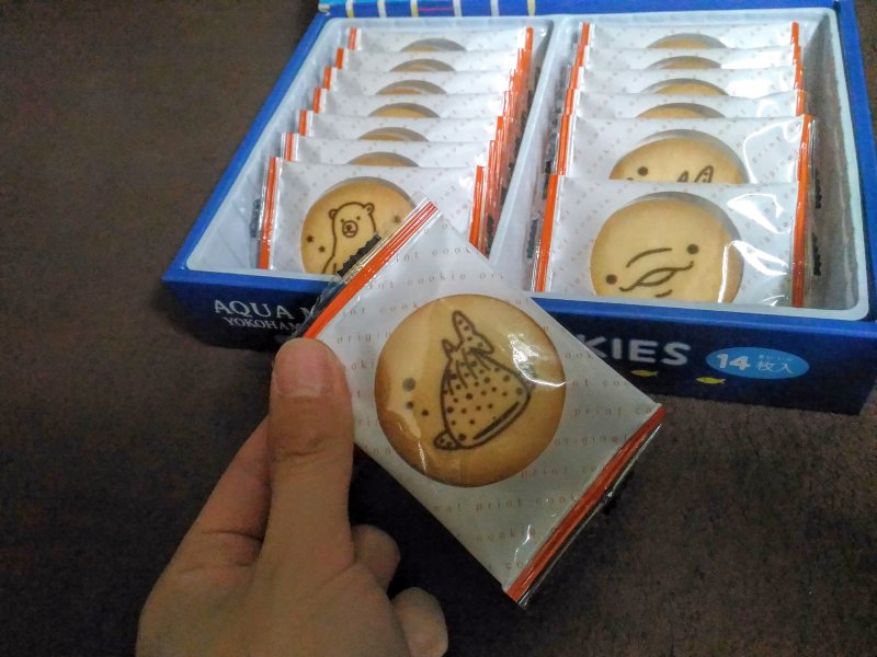 ある日スタッフルームに置かれていた厚木店スタッフ照屋さんからのお土産、江の水のクッキー。 あまりに可愛すぎて撮影したのですよ…!かわゆい…。 最近水族館もお土産お菓子凝っているんですねー。