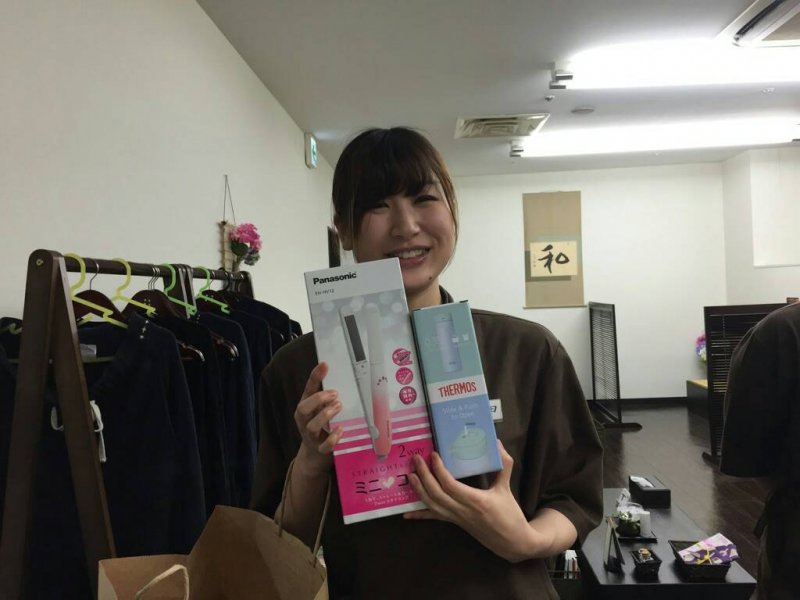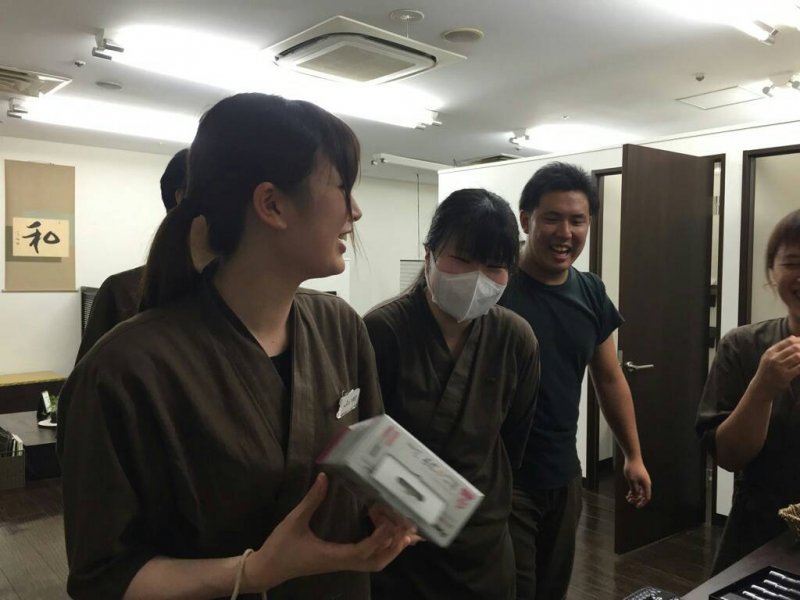 藤沢店のみんなからのプレゼントとして サーモスのボトルとコテが プレゼントされました!