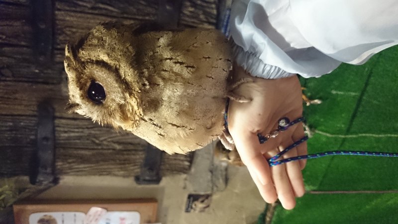 続いてフクロウゾーン。 色んな種類のフクロウが並んでいて、触ったり、手や肩に乗せて写真を撮ったり出来ます。 フクロウが本当に可愛くて、何時間でも見ていられそうでした☆ 癒されに、また行きたいです(^^)