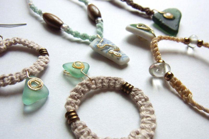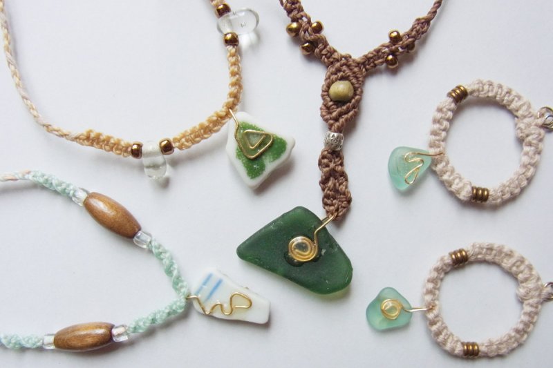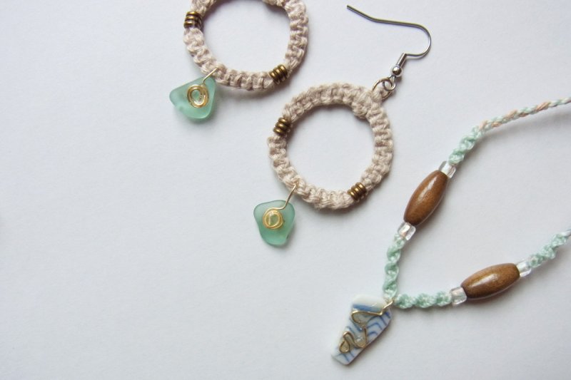 夏らしいアクセサリーは春や秋の涼しい海で拾ったガラスを使ってエアコンかかった電車やカフェの中で作られています。