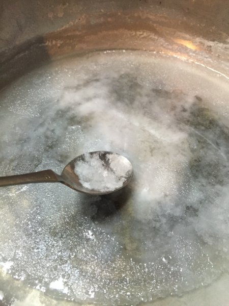 海水は三浦の海岸で遊びながら調達。 自宅に戻り2時間かけお鍋で煮詰め塩を取り出しました。 天日干しをしたかったのですが、連日雨の為、お鍋で炒ってサラサラ塩の完成です。