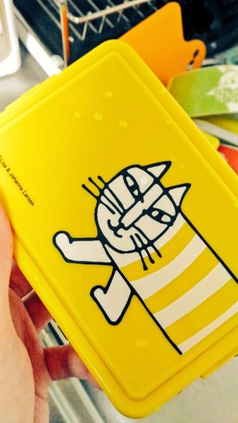 保冷剤が蓋に内蔵されているという超画期的お弁当箱とリサラーソンさんの描いた猫マイキーさんがコラボレーションしたものを発見してしまいました。