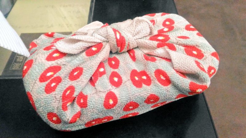 今は友人から頂いたミニ風呂敷でお弁当を包んでいます。