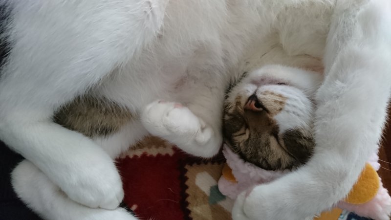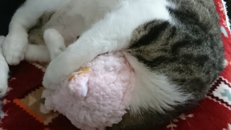先日たまたま実家に帰ったとき、 妹がガチャガチャでとったかぶりものを持って帰ってきました。 猫用のひつじのかぶりものです。 かぶってからしばらく寝たりしてたんですが 自分でコツを覚えたのかフードみたいに頭のうしろに外してました。 写真はかぶせて寝はじめたときのものです!