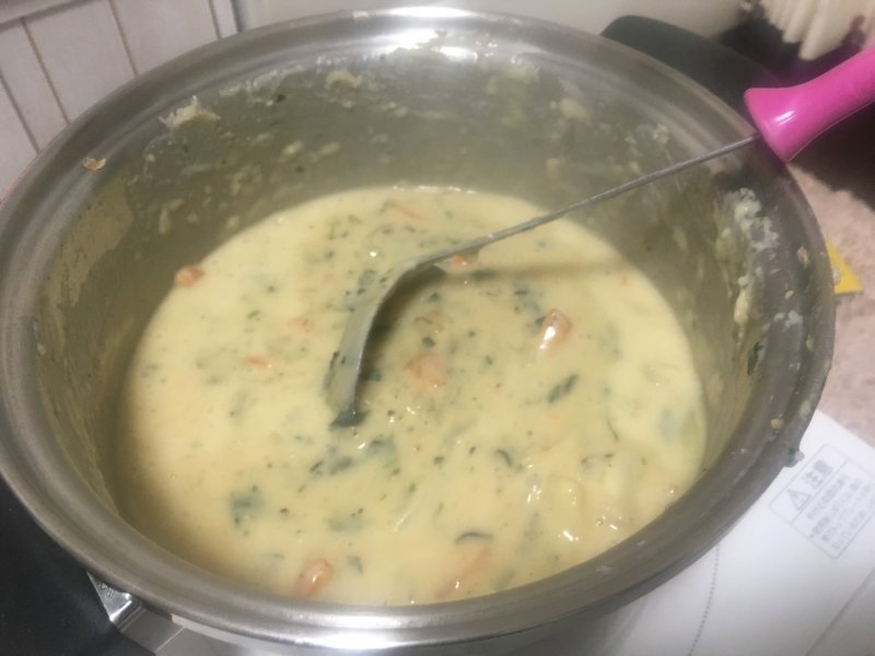 ってことで、寒いからシチューを作りました! 見た目あんまり分からないと思いますが、ほうれん草のクリームシチューを 作りました!!