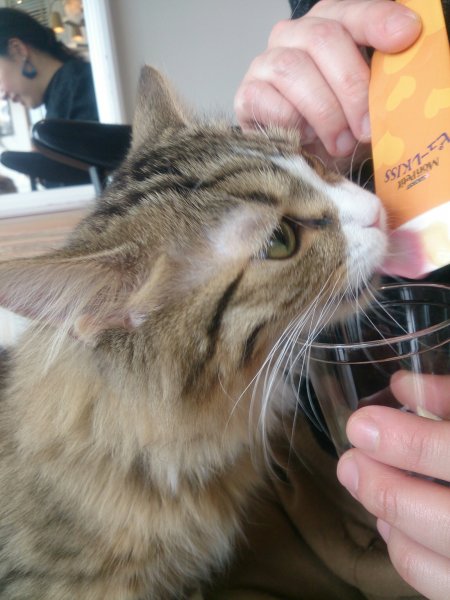 そして同日に猫カフェにも行きました! しかし全く撫でさせてくれませんでした… オヤツでどうにか仲良くしてくれました(笑)