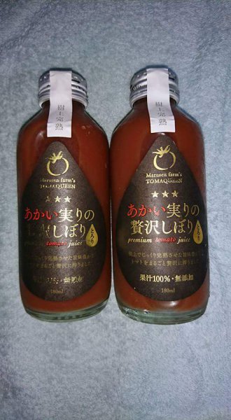 先日、お客様からトマトジュースを頂きました。 「これを飲んだら他のトマトジュースが飲めなくなるよ」 と言われ、どれだけ美味しいのか楽しみにしていました。 今日飲んだのですが、あまりの美味しさに 圧倒されました。 ブドウジュースのように甘く、また濃厚な味です。 これ贅沢すぎます(*^^*) また生産者のこだわりを感じます。 M様、ありがとございました‼