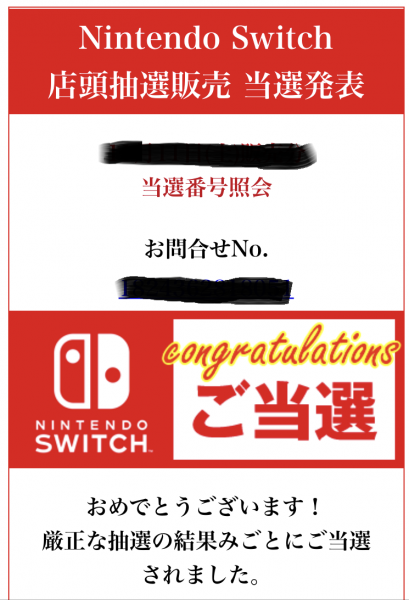 ニ〇テ〇ドース〇ッチの抽選当たる!