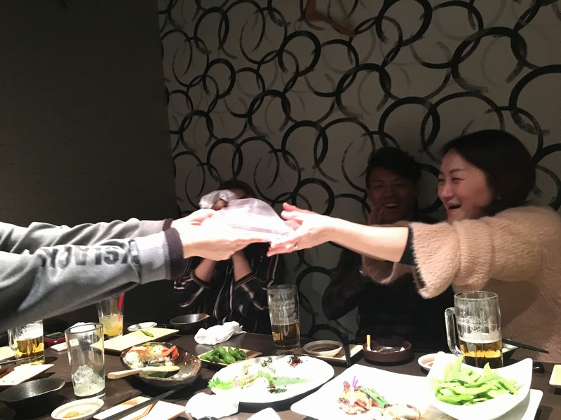 12/17誕生日の服部さんに少し早いですが、プレゼントを渡しました。 プレゼントは*安室奈美恵ちゃんCD*です。 みんなでお祝いをして、ケーキもいただきました。