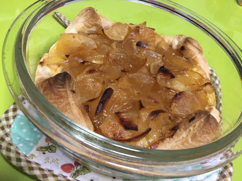 「カスタードクリーム」 と 「リンゴのコンポート」を作ってそれをパイで包むで焼くだけ