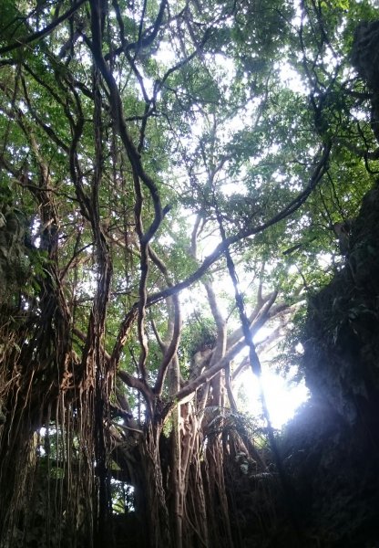 今回の旅はいくつか目的があったのですが、そのひとつが「ガンガラーの谷」散策です!ガンガラーの谷は、鍾乳洞だった場所が崩れてできた森で、1万8000万年前に生きていたとされる、「港川人」の居住区であった可能性が高いそうです。自然豊かな亜熱帯の森で、大きなガジュマルは力強く、神秘的でした!