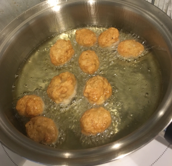 適当に味付けした鶏肉を挽いて、それを揚げたら美味しいのではないか??? と思い立ったので試してみました