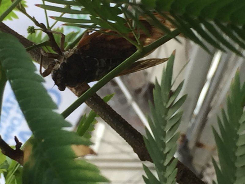 お店の看板横に置いてる観葉植物、エバーフレッシュに今年も続々と花が咲いてます! この前はなんと、セミがとまってました。 翌日の朝もまだ居て、根岸さんが触ろうとしたら元気に飛び立ちました。 セミも涼んでいたのかな〜?