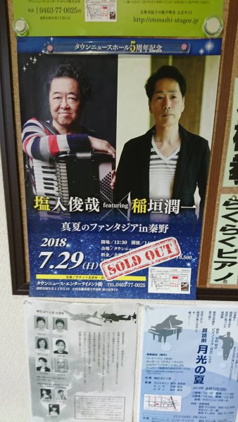 昨日はお休みを頂き、秦野の「タウンニュースホール」というところで、またもや稲垣潤一さんのライブに行って来ました。