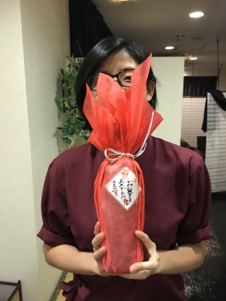 7月は鶴岡さんお誕生日でした。 プレゼントはイタリアのシチリア産白ワインです♪ ワインが似合う鶴岡さん☆ 茶目っ気のある写真可愛い(^^)