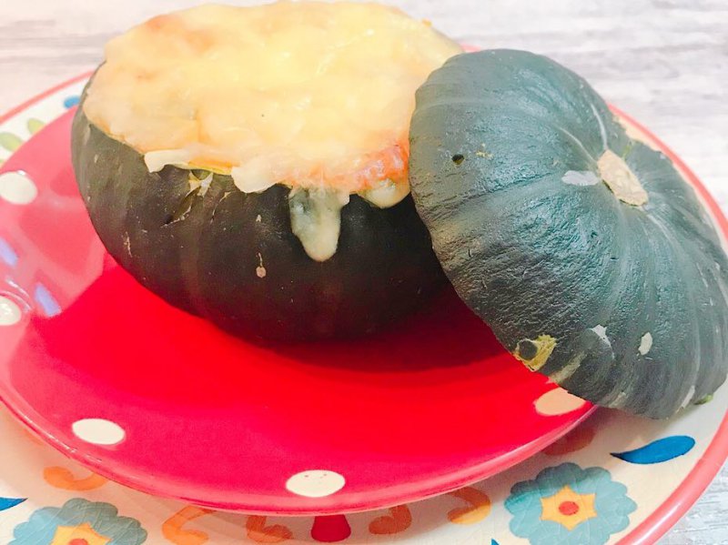 3枚目は、坊ちゃんかぼちゃを器にしてかぼちゃグラタンです!