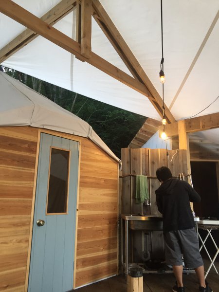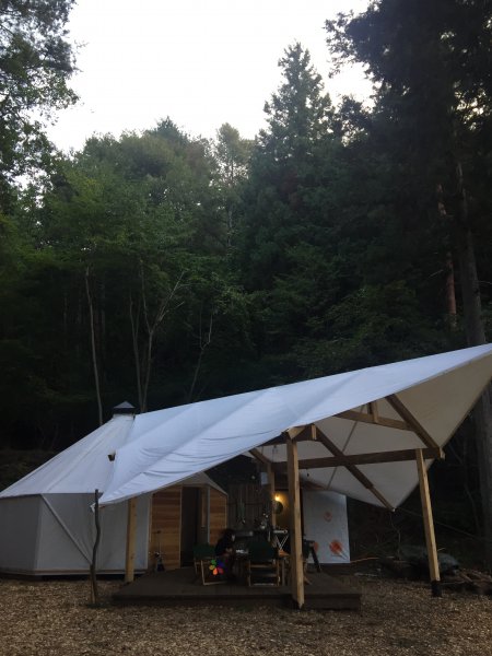 山梨の”まほろば”キャンプ場です。 今回はパオに泊りましたが、その他はトレーラーハウスと和室小屋がありこれもシンプルでおしゃれでした。 富士山は目の前で朝から拝みたくなる堂々とした雰囲気でした。