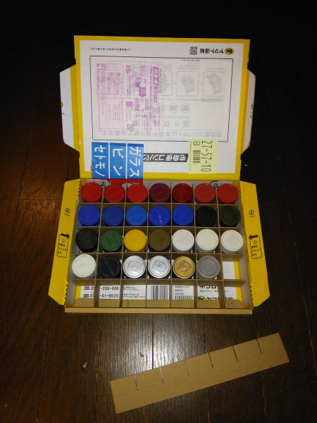 箱と塗料のサイズに合わせて仕切り板を作ってみました。