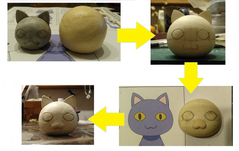パース付きの設定画からほっぺラインのアールを拾いライン修正&耳を3ミリ前に出す。