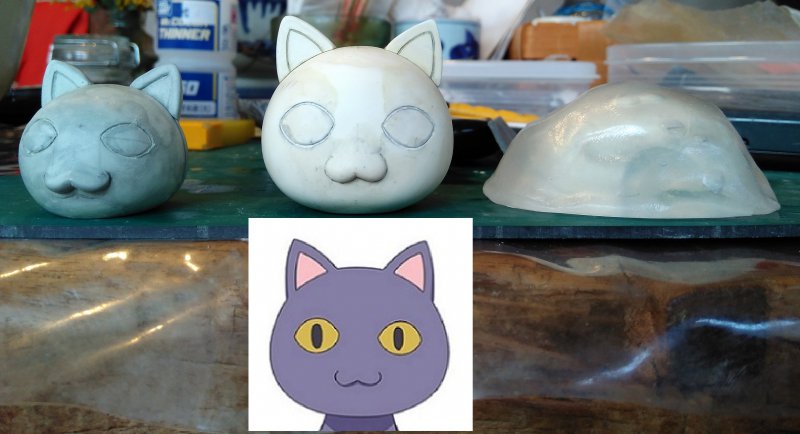 今度は表情違いの顔を作る為、おゆまるで型を作って複製中です。(写真向かって右)