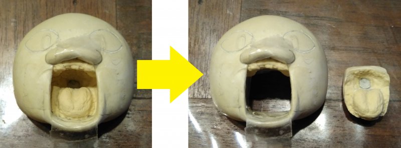 口の中はそのままだと削りづらかったので別パーツにしました。