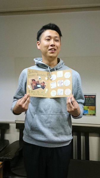 肩こり・腰痛・足裏 サンリラクゼーション厚木 今井です。 先日、厚木店の主任 吉江さんにお誕生日プレゼントを贈りました。 年齢は数えなくなったと冗談を言いつつ和やかな雰囲気でお祝いできました。 おめでとうございます!