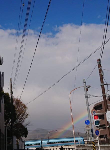 休憩中に外に出たら、きれいな虹が♪