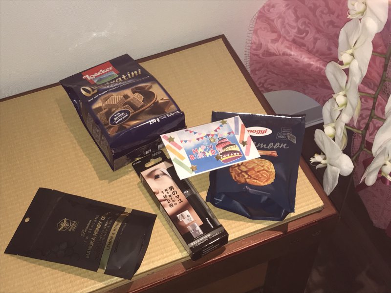肩のこり、腰痛、足つぼ サンリラクゼーション平塚店の和田です。 5月は野田さんの誕生日でした。 誕生日プレゼントは本人からの希望で まゆげシェイバーとお菓子をプレゼントしました!