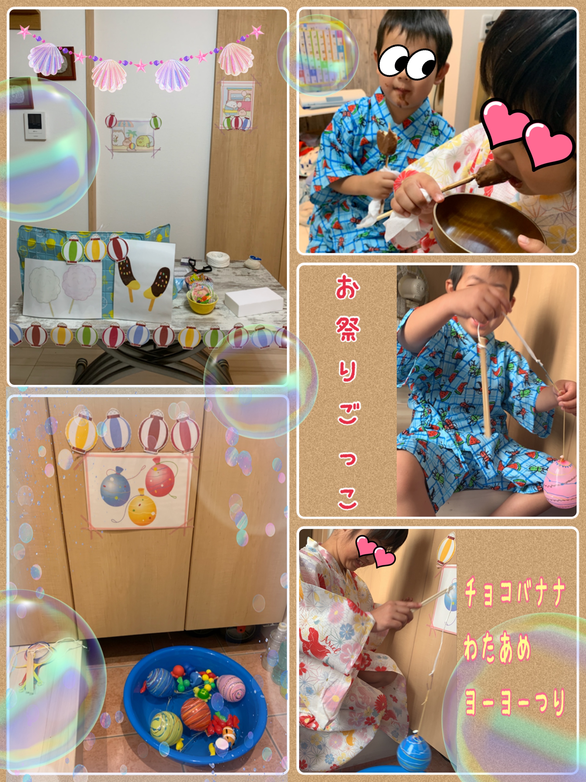 夏らしいイベントがことごとくなくなっている今年。子供たちの楽しみが無くなっているのがかわいそうで、我が家ではおうちでお祭りごっこを開催しました☆