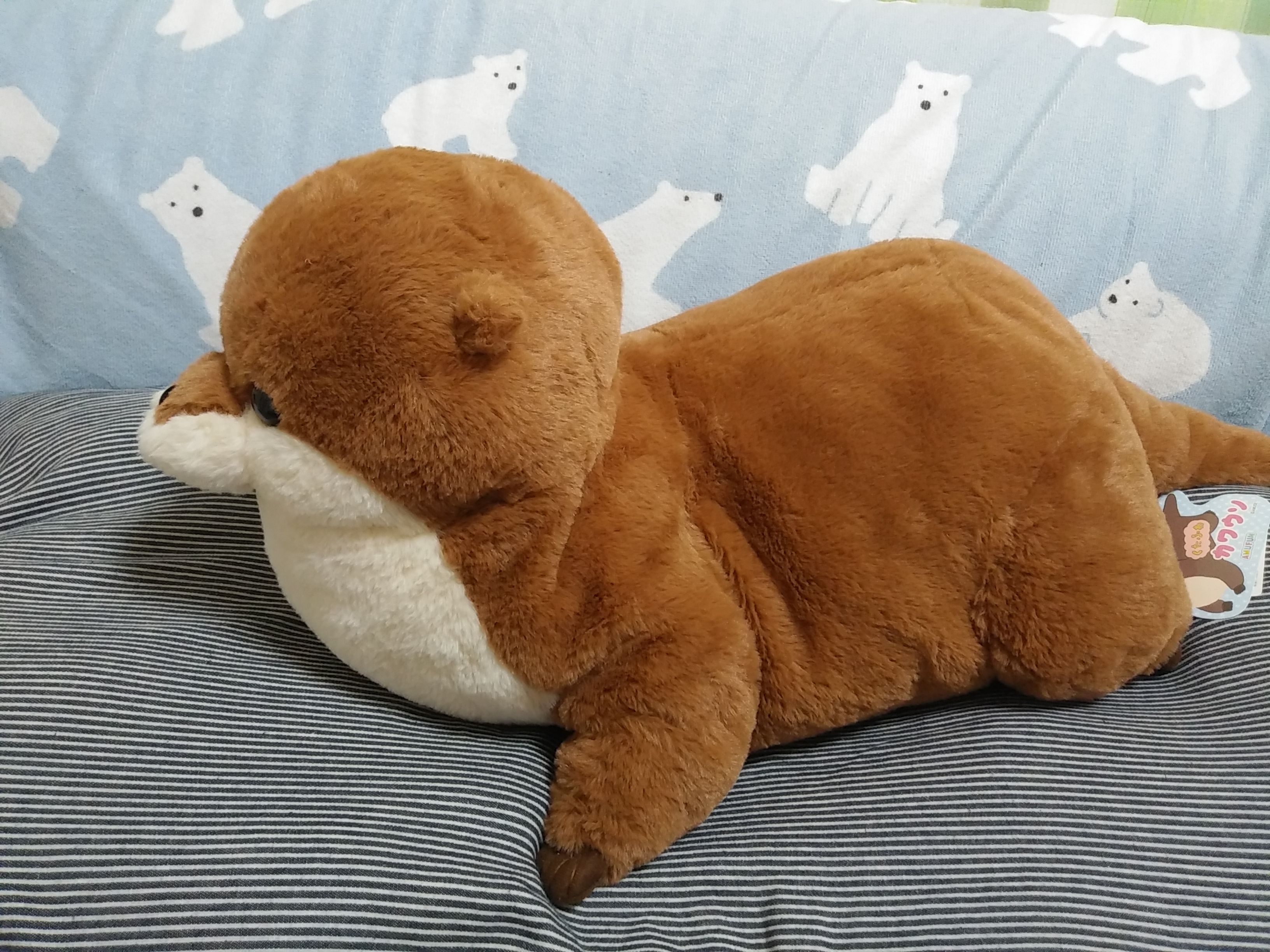 昨日、帰宅中、駅前のゲーセンにて大きなカワウソのぬいぐるみを見つけ、これは連れて帰れねば!って思い。
