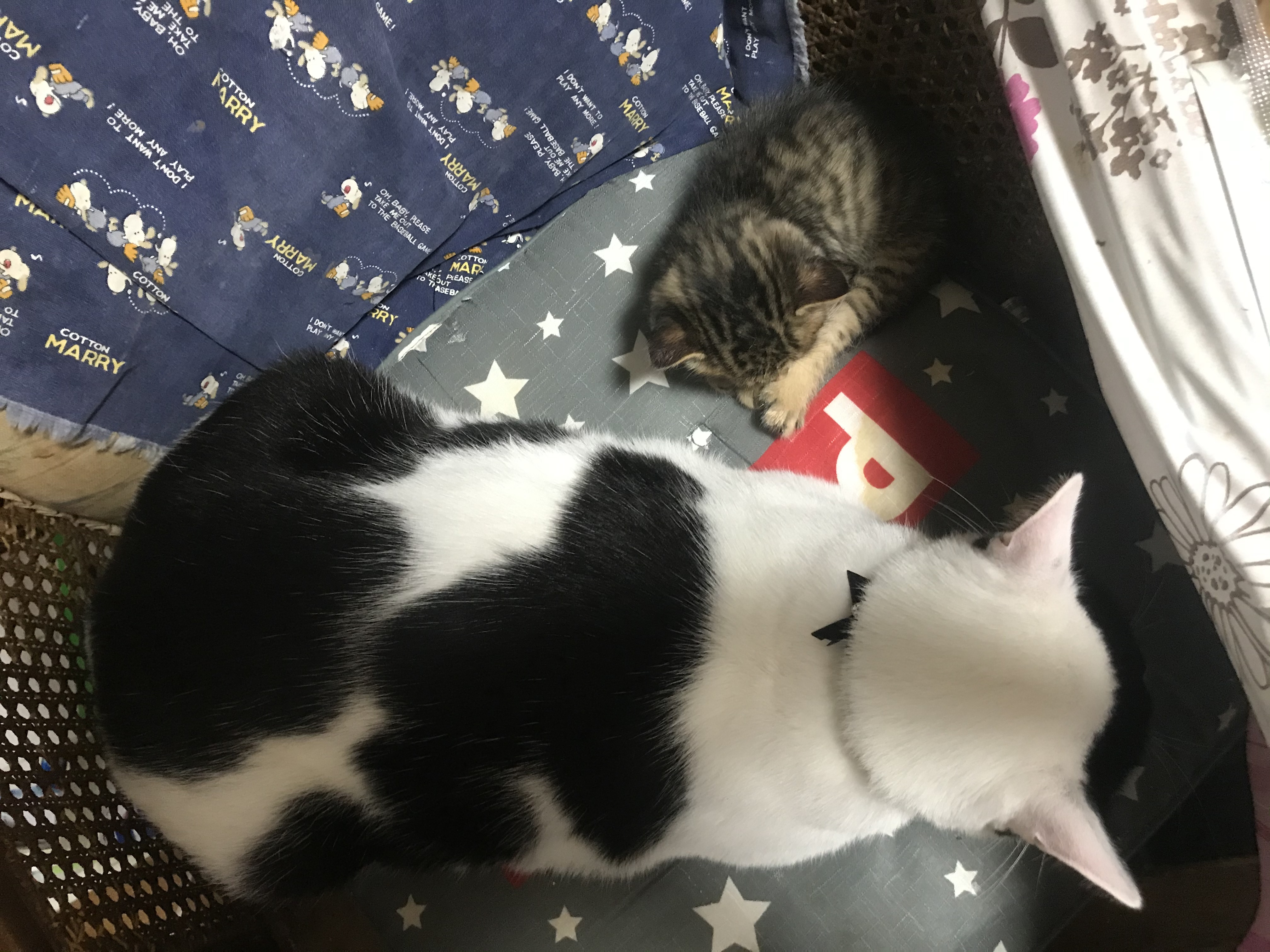 自宅の庭に野良猫が住みついており、子猫が生まれたので一時的に保護しました。今はほしいと言ってくれる方が無事に見つかって居ませんが、数日間癒されました。今飼っている猫もこれだけ小さい時があったのですね。比べるとびっくりです!直ぐに受け入れて構って上げたり、一緒に寝てあげたりする姿勢が偉い!優しいですね!
