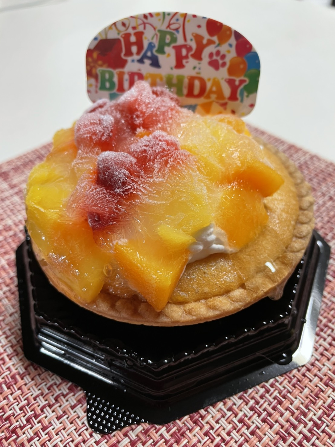 プレゼントはバースデーケーキと相棒パルちゃんとのツーショットクッションです(^^)