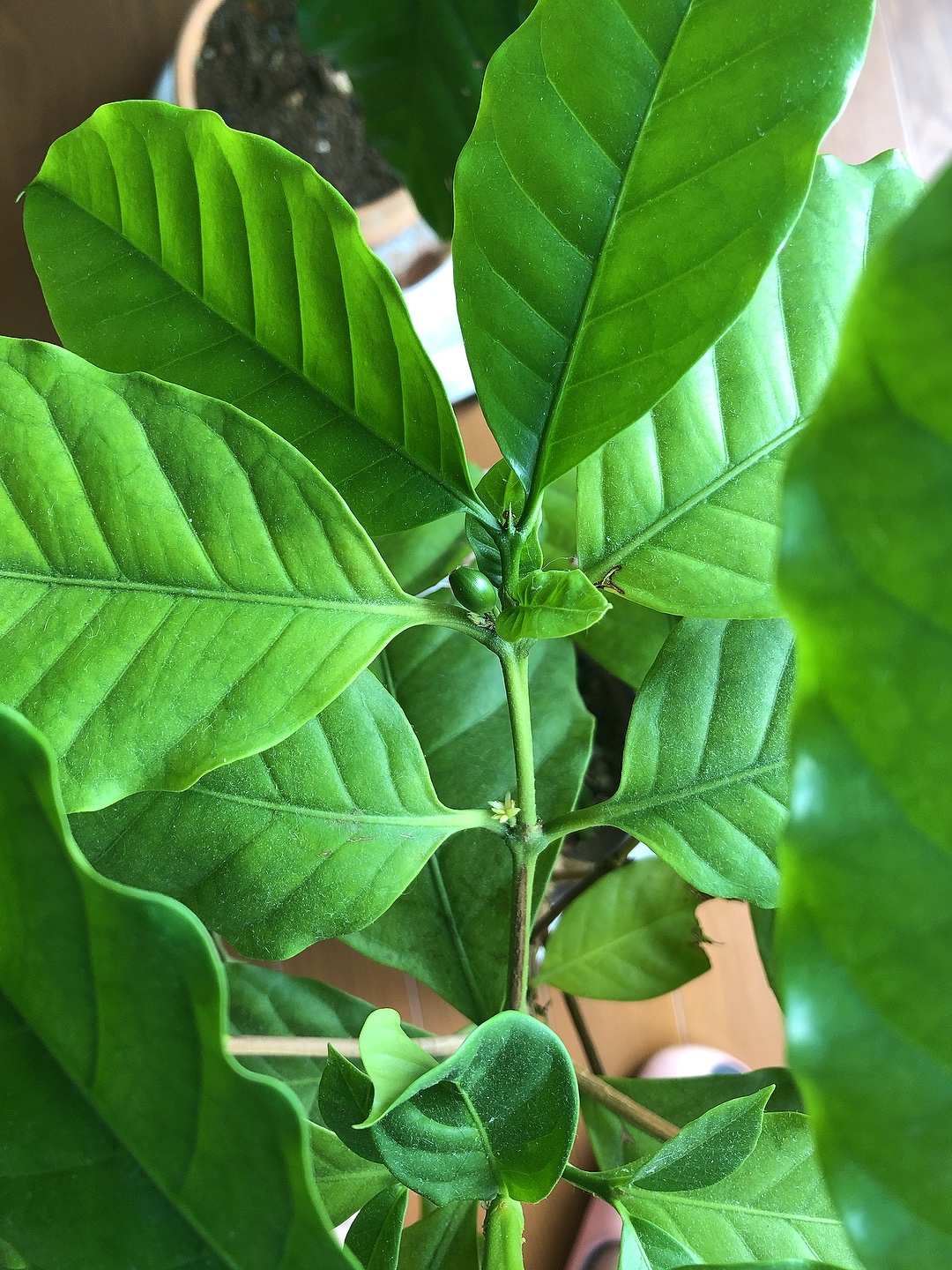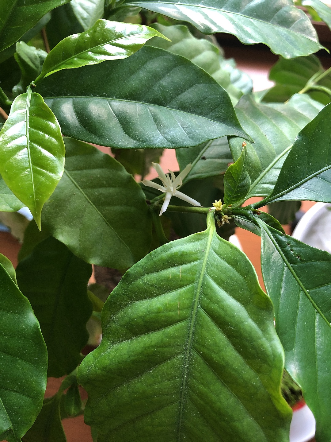 リビングにずっと置いてあるコーヒの木に、花が咲いて実がなりました!