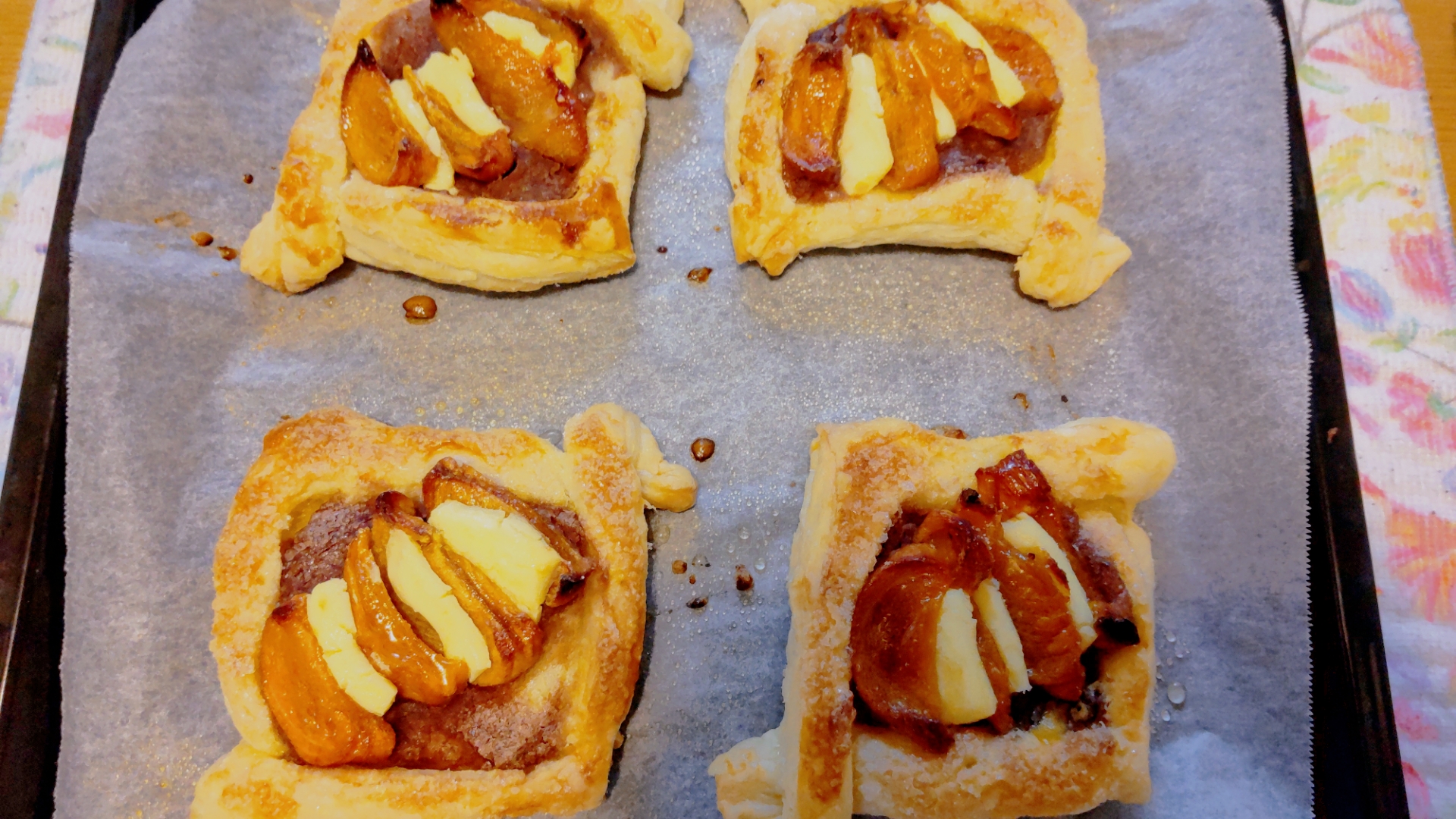 お菓子は、ドライフルーツの柿とクリームチーズ、餡子のパイを🍰