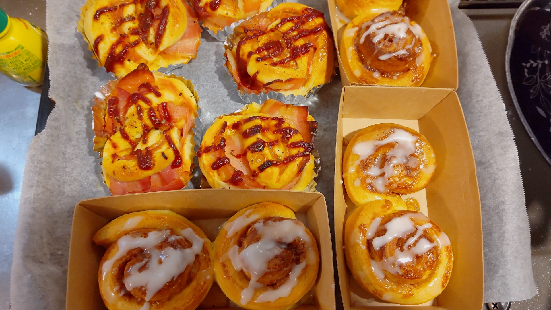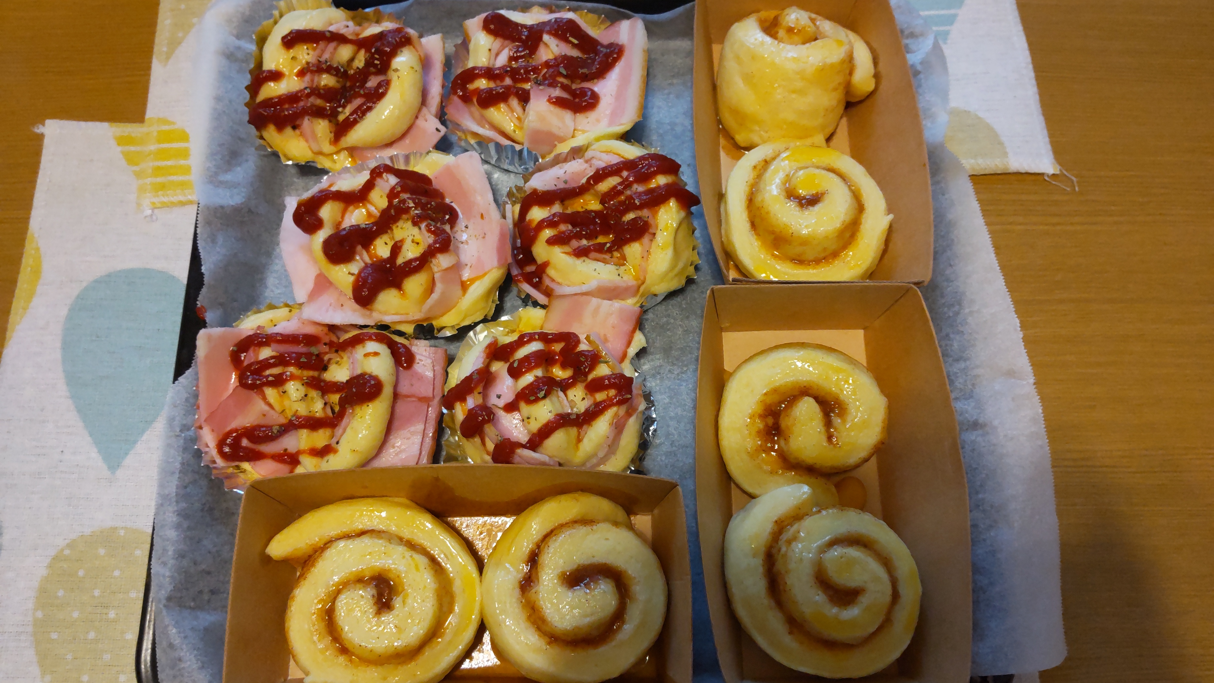 パン🍞は、ベーコンロールとシナモンロール!(八・ω・)