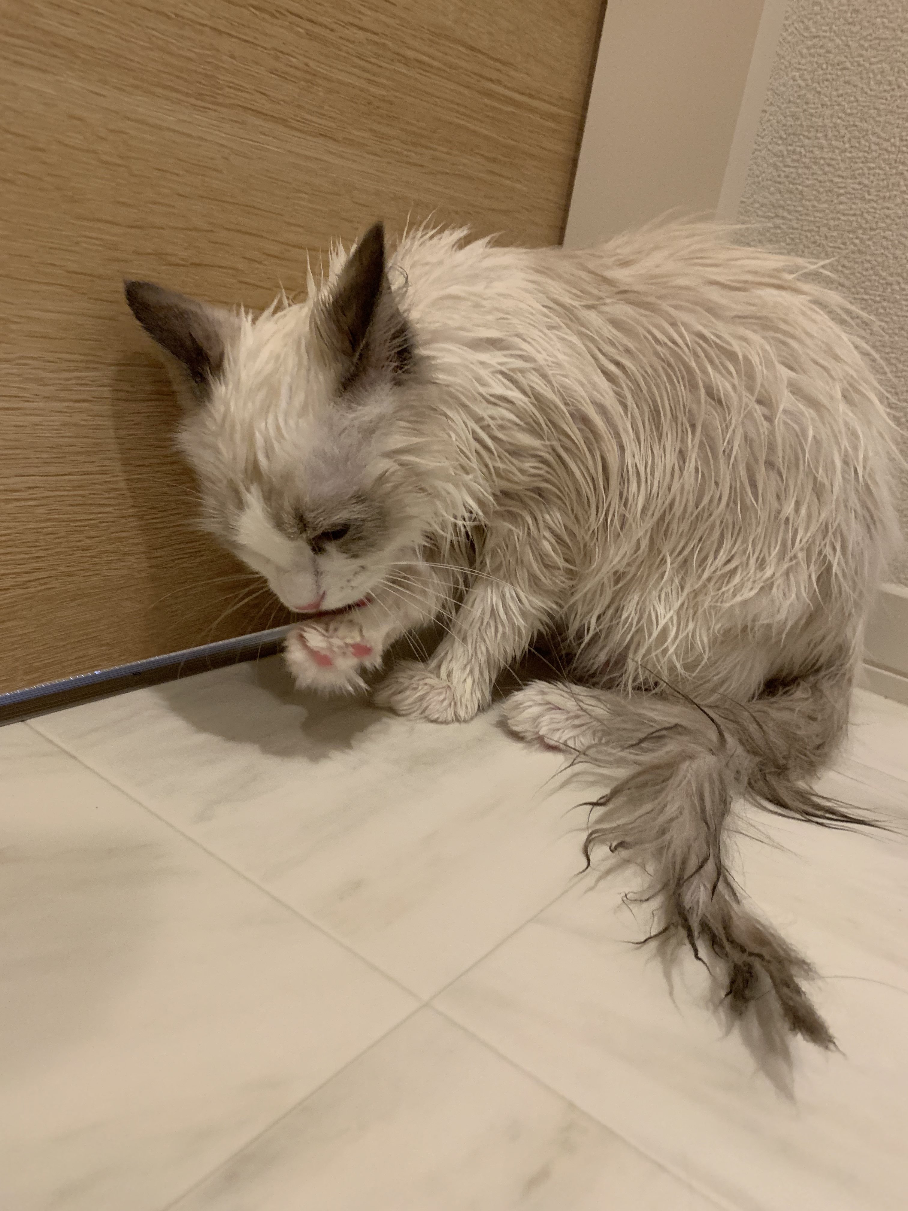 やっぱり水は苦手なようで逃げ回っていたけど、最終的には全身くまなく洗われました。