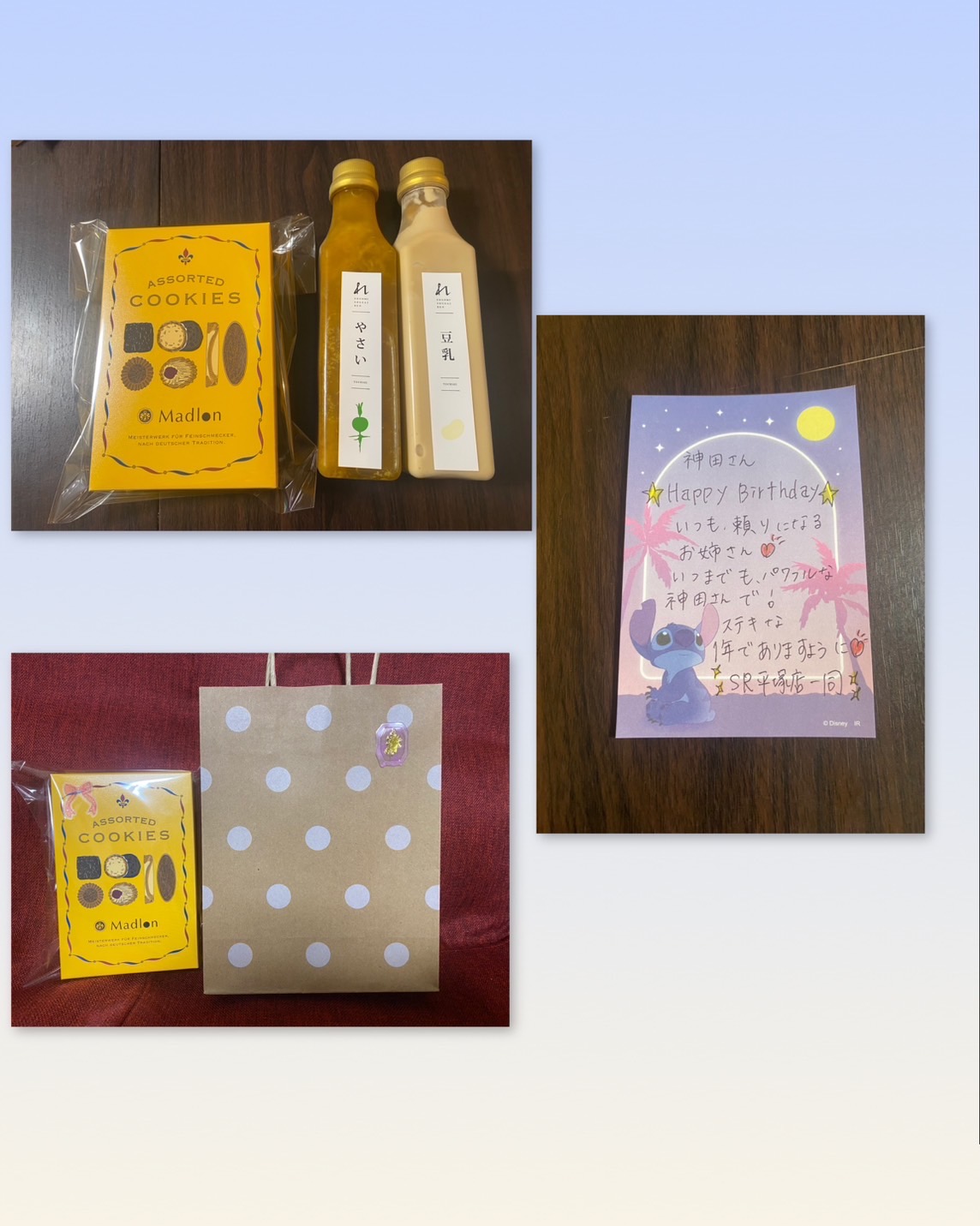 お誕生日プレゼントはてまひま工房REN様の野菜ドレッシング&豆乳ドレッシング+お菓子の詰め合わせでございます!