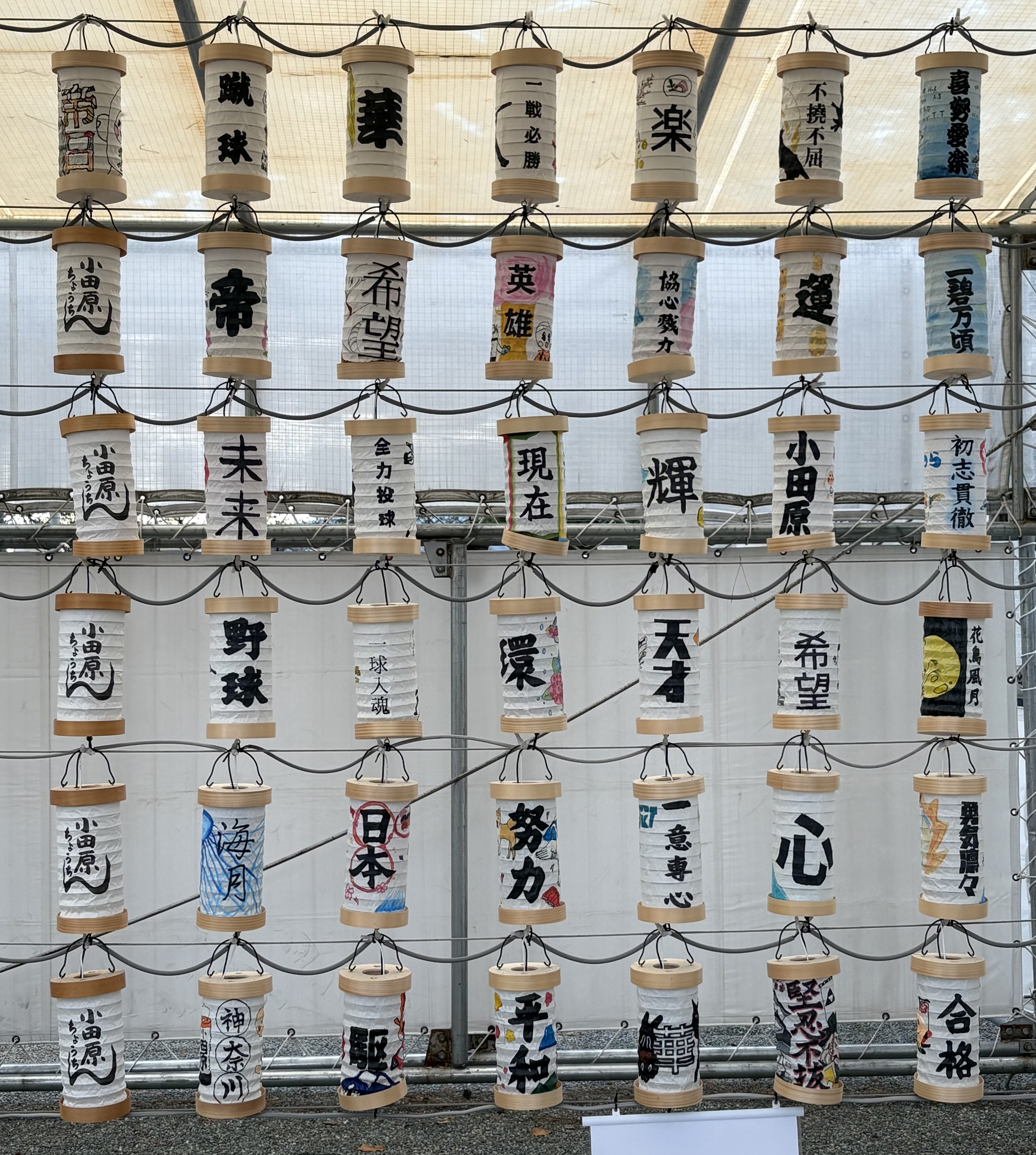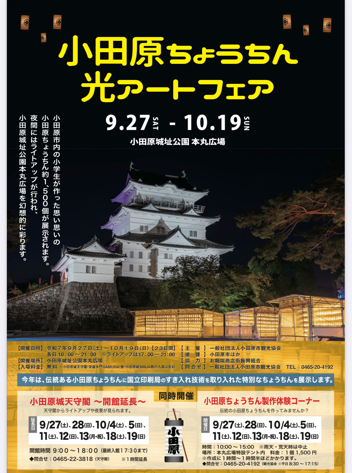 毎年小田原市の小学5年生、または6年生が保護者と一緒に作成したちょうちんがお堀にずら〜っと飾られています。