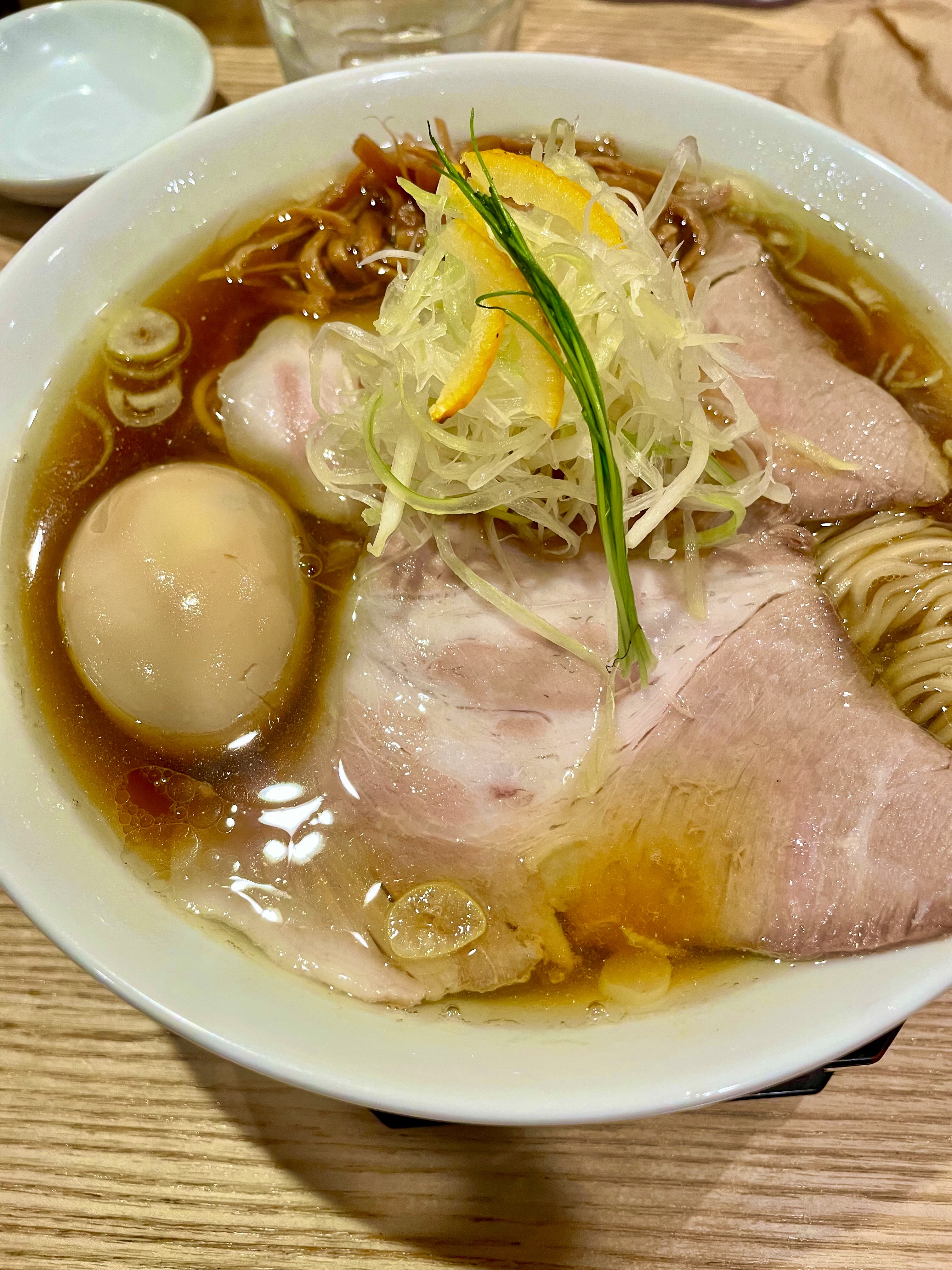 ラーメンはど直球の正統派醤油で柚子と白髪ネギがいいアクセントで、麺がスープと相性バツグンです。ロースト感ある醤油がまろやかで優しい〜。生卵入れると一気に癒し系に変身するの最高です。