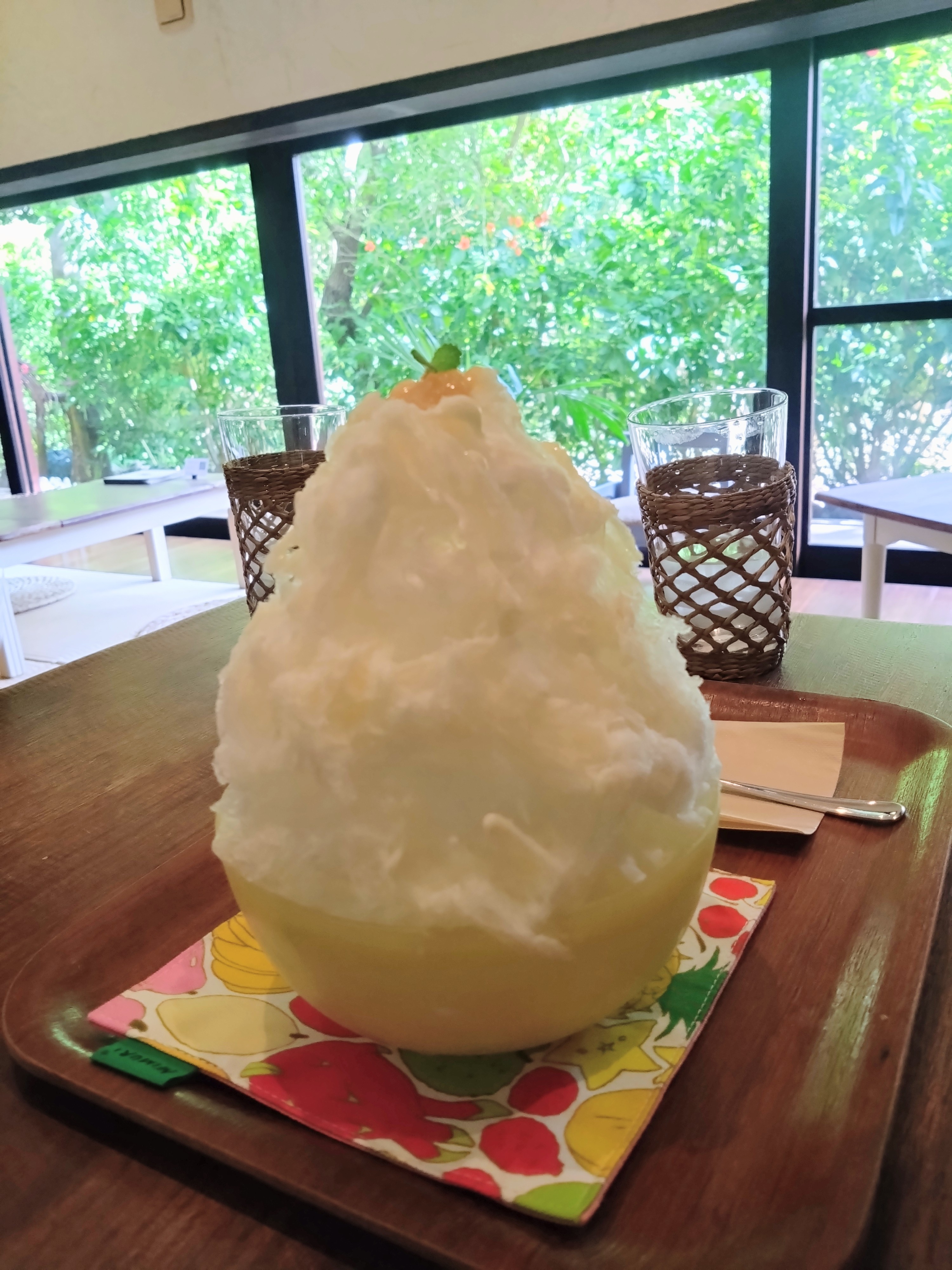 ②竹富島のパーラー願寿屋さんの黒糖パフェ