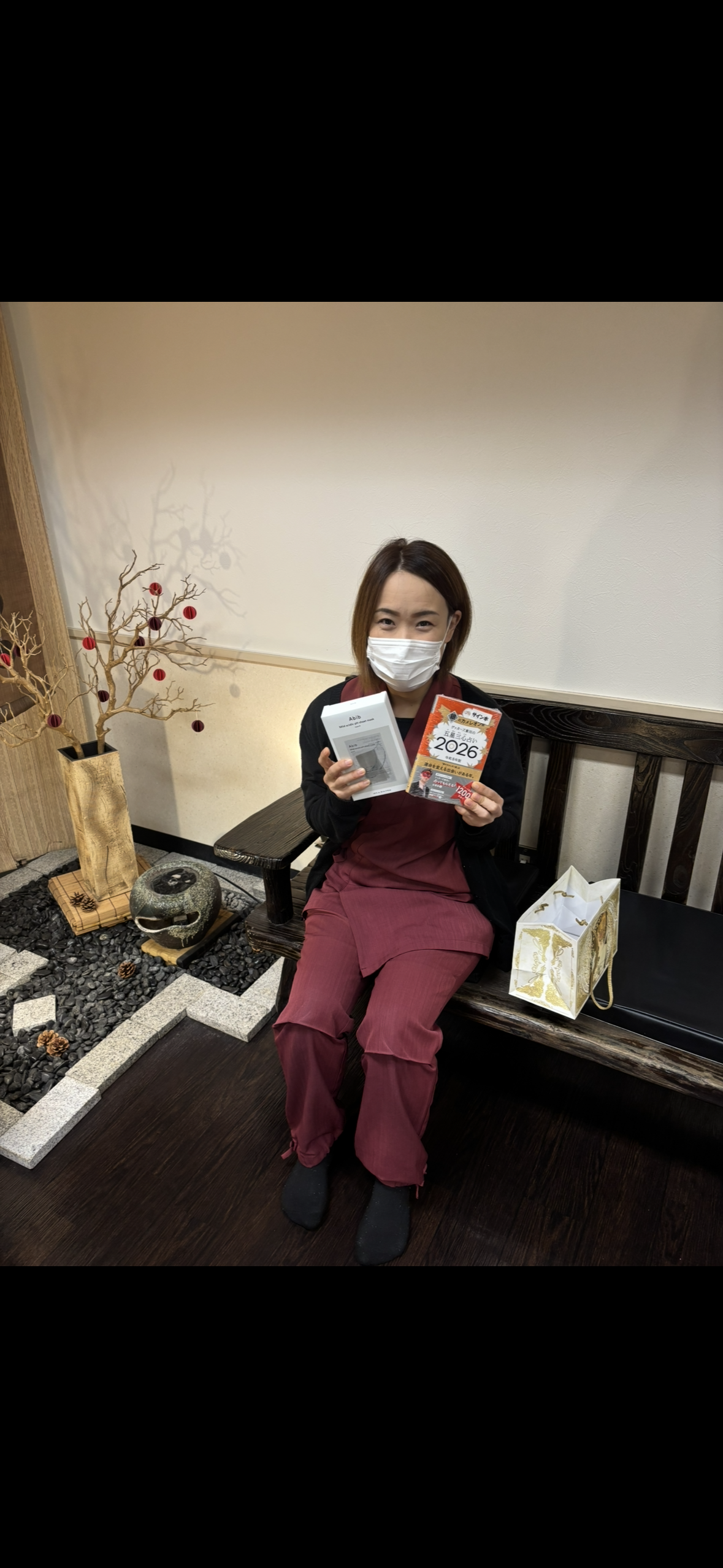 12月18日は杉山さんのお誕生日でした。スタッフみんなからのプレゼントは「韓国コスメ・シートマスクパックアクアフィット10枚とゲッターズ飯田の五星三心占い本」です✨