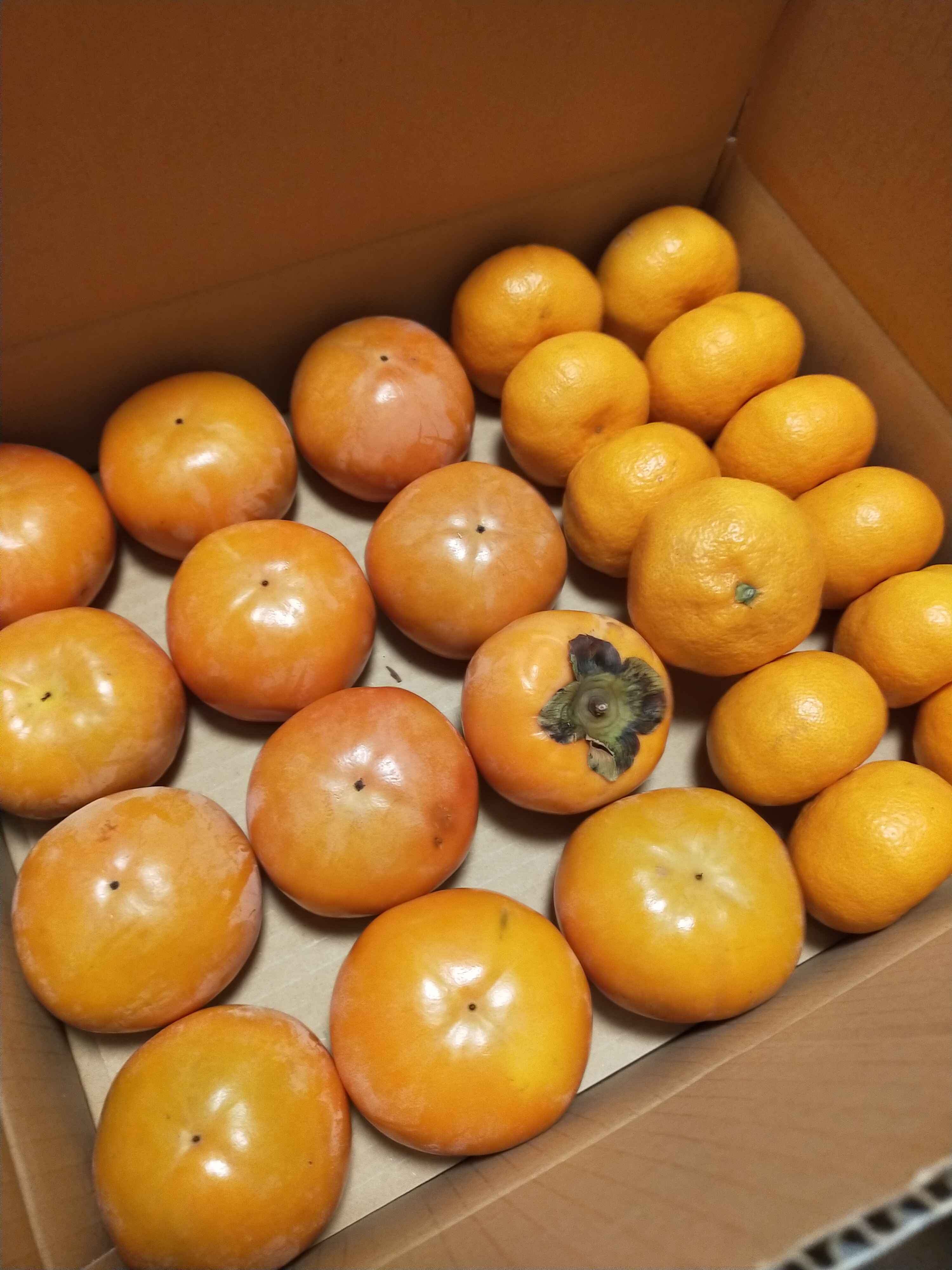 妻が柿好きなので全部柿をあげて、私はみかんを全ていただきました。 みかんとても美味しかったです。
