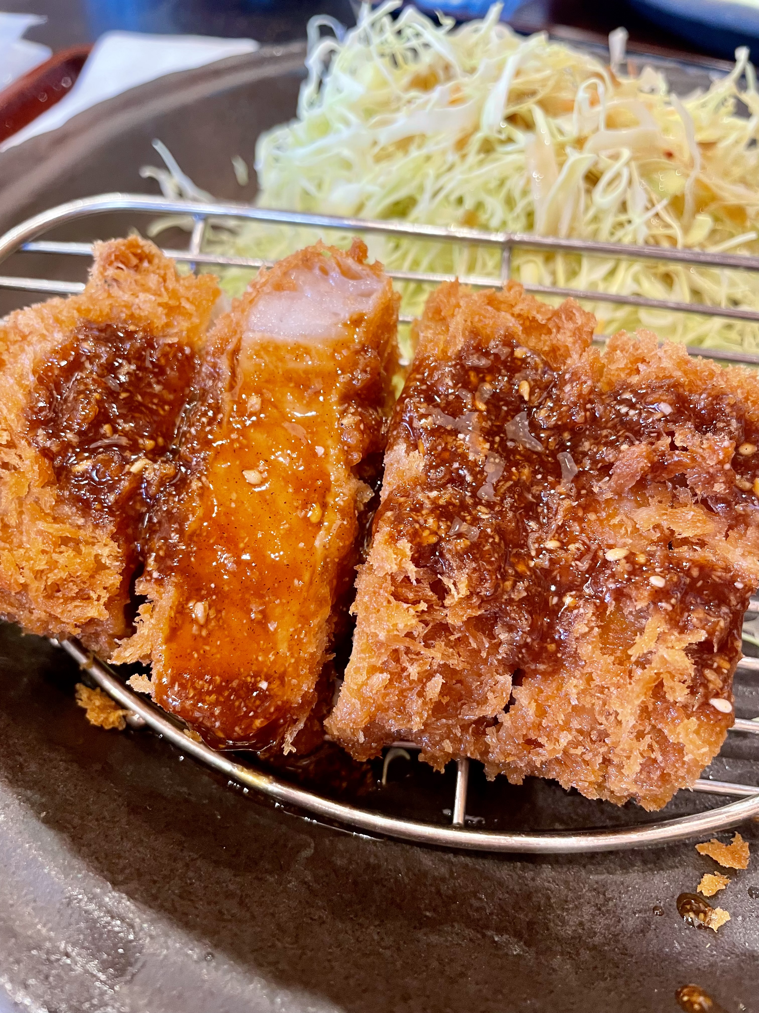 肉は驚くほどやわらかく、噛むたびに旨みがじゅわ〜っと広がる…幸せ。これは「ご褒美とんかつ」。一度食べたら忘れられない。