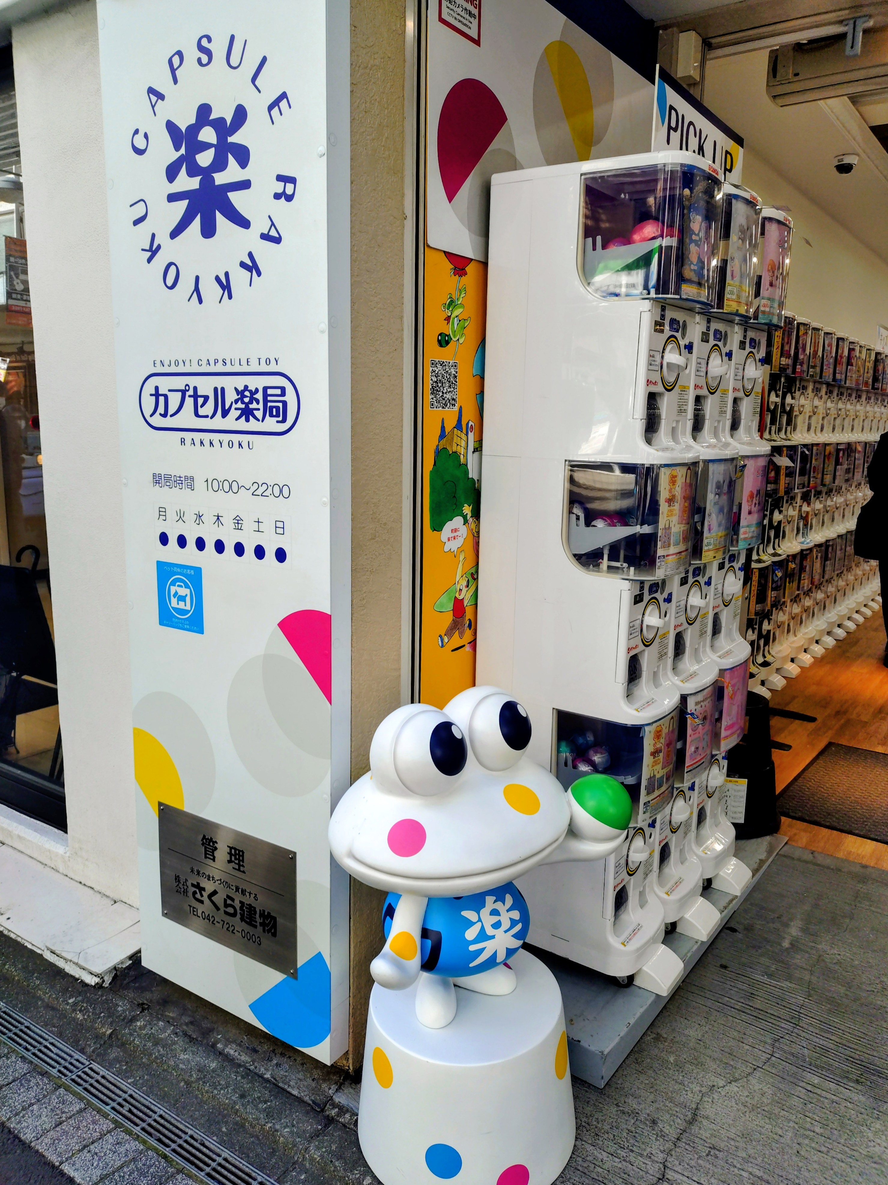 町田にもガチャポンが出来るところがいくつかありますが、ここはスタッフの方が白衣を着用し、さらに店頭にはカエルの置物がいる薬局さながらのガチャポンのお店です。