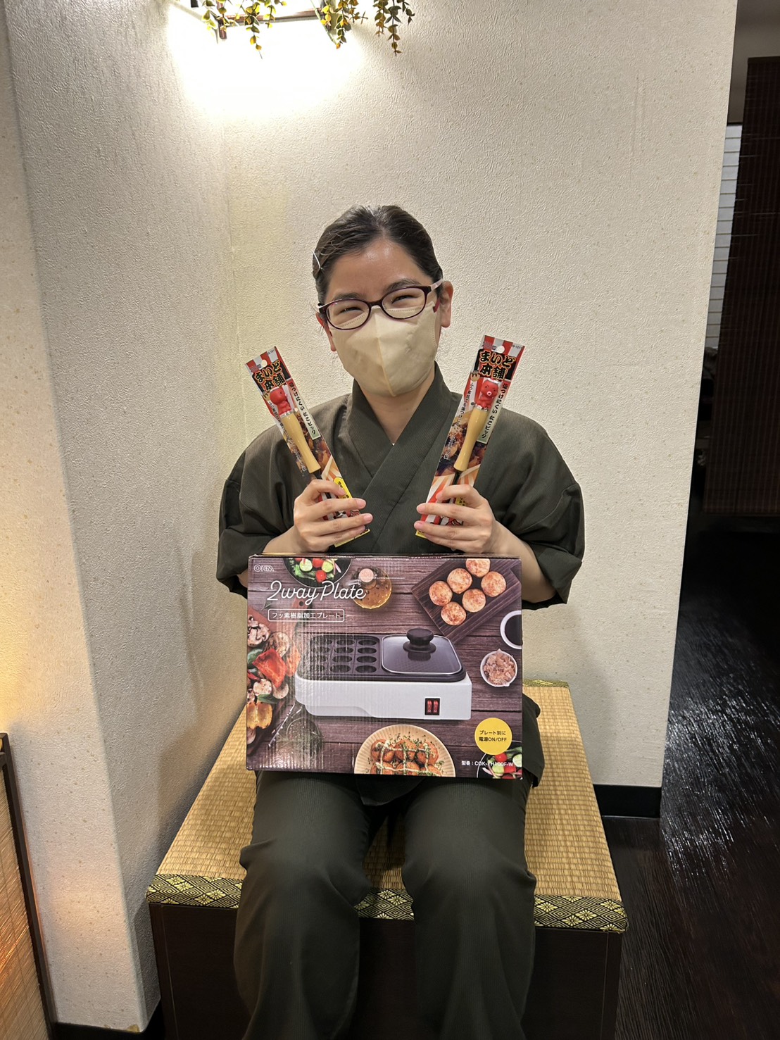 プレゼントはたこ焼きと半分は他の料理ができるハイブリッドなホットプレートとタコさん付きのたこ焼きピックです。
